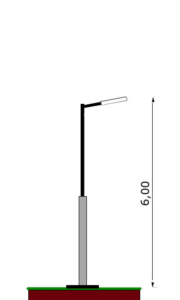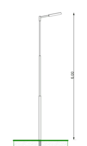 Columna recta de 6 metros de altura total con brazo recto desmontable de 0,5 metros y base de 30×30.